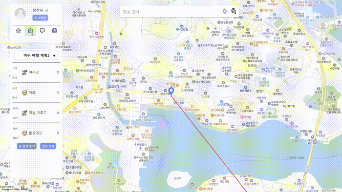 kakao map api를 이용하여 지도 위에 일정을 표기하였다.