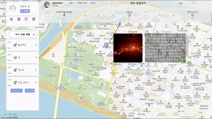 여행 일정을 짤 때 매번 웹 상에서 검색해 마음에 드는 장소를 찾고 해당 장소를 지도에서 검색해보고, 따로 일정표를 작성하는 번거로움을 해소하고, 상호간의 일정을 공유하는데에 있어서 편리함을 제공하기 위한 서비스이다.